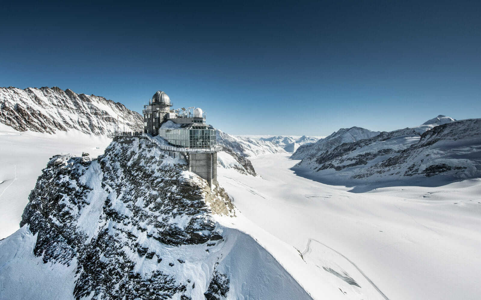 Die Ferienregion Jungfrau-Aletsch-Bietschhorn wurde als erstes zum UNESCO Naturerbe der Alpen benannt, mit 23 Kilometern Länge fließt hier der längste alpine Eisstrom, der Aletschgletscher.